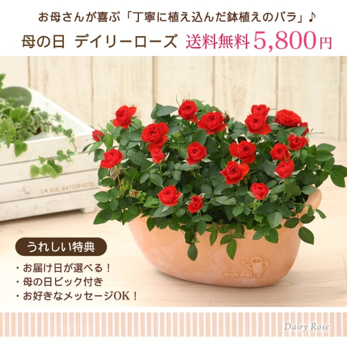 第40回農林水産祭 天皇杯受賞!ずっと育てられるお母さんが喜ぶプレゼント♪ 母の日 ギフト ミニバラ 赤色 黄色 ピンク色【母の日】天皇杯受賞!デイリーローズ 丁寧に植え込んだバラの鉢植え♪ 花色指定 母の日 ギフト プレゼント 嬉しい 赤 黄 ピンク メッセージカード 5月10